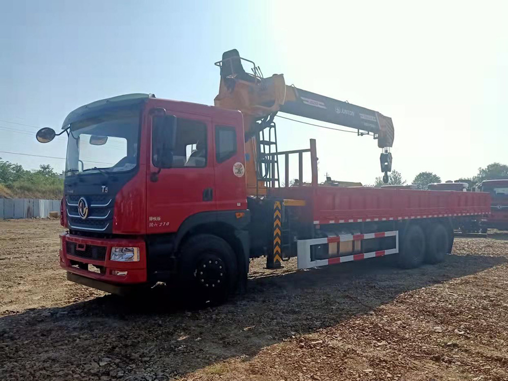 上裝:駿通12噸四節(jié)臂吊機(jī),舉升高度17.5米,工作半徑15.5米,支腿跨距5.8米,吊機(jī)二節(jié)臂單出可帶載伸縮5噸,大臂升完可吊1.5噸,自動(dòng)收鉤,標(biāo)配通副梁,散熱器,東風(fēng)原廠貨箱